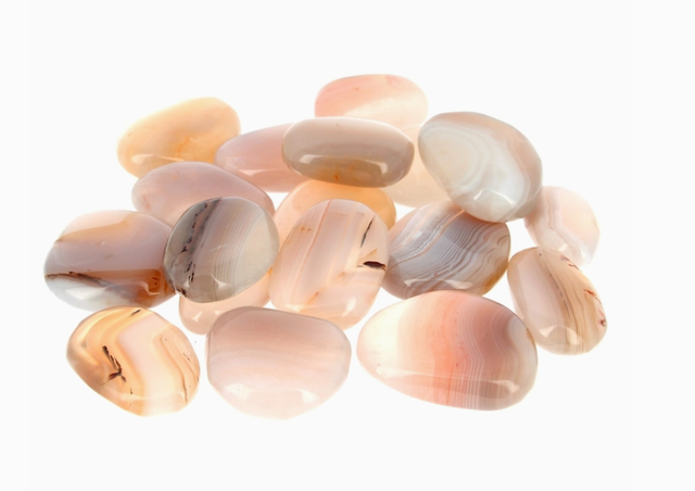 L'agate est une pierre douce, féminine, qui pose et apporte la stabilité dans le bassin. Elle invite à prendre soin de son corps, d'en respecter les besoins. Elle aide à se connecter à ses sensations, à rétablir les limites physiques pour se respecter et respecter son intimité. En ça, elle est souvent dite pierre de protection.